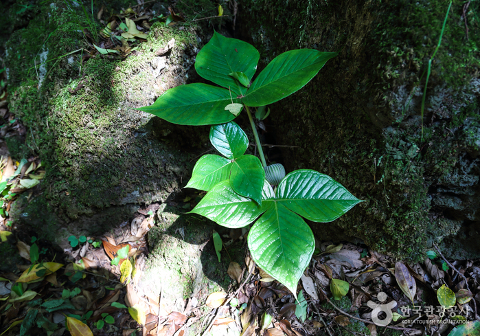 신비로운 숲을 한참 걷다가 이마에 송골송골 땀이 맺힐 즈음, 반가운 바람이 불어온다. 지층 변화로 생긴 풍혈에서 나오는 바람이다. 구멍이 분화구 밖까지 이어져, 숲속으로 바람을 보내주니 천연 에어컨이다. 용암길 안으로 들어갈수록 원시림이 짙다. 양팔을 벌린 고사리 무리에 이어 나무뿌리가 눈길을 끈다. 척박한 바위에 뿌리를 내린 나무가 대견하다. 특이하게 나무뿌리가 널빤지처럼 옆으로 뻗었고, 나무줄기만큼 굵다. 흙 대신 바위에 뿌리를 내리기 위해 변형된 모습이다.