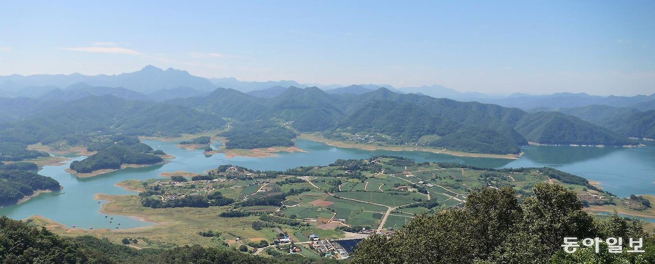 내려다보니 물이었다. 사방이 땅으로 둘러싸인 충청북도. 그곳 제천(堤川)에서 이런 광경을 볼 줄은 몰랐다. 남한강이 허리를 감아 돌긴 하지만 지금 산들은 물을 품고 있다. 태아를 감싼 양수처럼 아늑하게. 놀랐던 까닭은 제천의 한자어 뜻을 헤아리지 않았던 탓일 수 있다. 풀이하면 물가에 쌓은 방죽. 1000년도 더 옛날에 만든 저수지 의림지(義林池)에서 비롯된 말이라고 하는데, 제천 전체가 넉넉한 물을 담고 있는 큰 둑인 양하다.